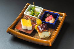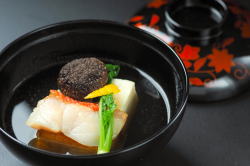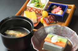 一 箸付 黒胡麻豆乳寄せ 人参 蓮芋 百合根 キャビア 山葵 美味出汁 一 箸付 地養鶏スープ 鶏塩麹蒸し 白舞茸 クコの実 一 前菜 鰻寿司 牡蠣有馬煮 烏賊黄味焼き 銀杏松葉刺し 地三つ葉浸し 一 お椀 帆立進丈 餅大根 地金目鯛 焼椎茸 姫蕪 柚子 一 造り 季節のお造り4種盛り 鮪 鯛 間八 海老 妻一式 一 焼物 鰤照焼 赤魚柚香焼 大平卸し橙酢和え 紅芯大根甘酢漬け 焼青唐 一 炊合せ 丸大根土佐煮 鮭治部煮 水菜玉〆 紅葉麩 絹さや 大黒湿地茸 一 組肴 芹・長芋土佐酢ジュレ掛け 花蓮根酢取り 牛八幡巻 秋刀魚新引揚げ 花豆 一 ご飯 新米 修善寺特産 特別栽培米 桂流こしひかり 一 香の物 3種盛り 一 留椀 赤出汁 一 甘味 黒米羊羹 りんご石榴煮 キウイフルーツ |