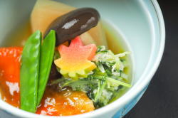 一 箸付 黒胡麻豆乳寄せ 人参 蓮芋 百合根 キャビア 山葵 美味出汁 一 箸付 地養鶏スープ 鶏塩麹蒸し 白舞茸 クコの実 一 前菜 鰻寿司 牡蠣有馬煮 烏賊黄味焼き 銀杏松葉刺し 地三つ葉浸し 一 お椀 帆立進丈 餅大根 地金目鯛 焼椎茸 姫蕪 柚子 一 造り 季節のお造り4種盛り 鮪 鯛 間八 海老 妻一式 一 焼物 鰤照焼 赤魚柚香焼 大平卸し橙酢和え 紅芯大根甘酢漬け 焼青唐 一 炊合せ 丸大根土佐煮 鮭治部煮 水菜玉〆 紅葉麩 絹さや 大黒湿地茸 一 組肴 芹・長芋土佐酢ジュレ掛け 花蓮根酢取り 牛八幡巻 秋刀魚新引揚げ 花豆 一 ご飯 新米 修善寺特産 特別栽培米 桂流こしひかり 一 香の物 3種盛り 一 留椀 赤出汁 一 甘味 黒米羊羹 りんご石榴煮 キウイフルーツ |